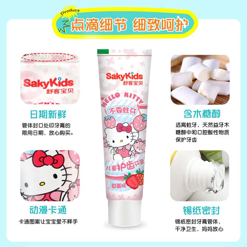 Shukhi Baby Shuk Children's children's toothpaste 60G strawberry taste with fluorine-proof 3-6-8-12-year-old baby