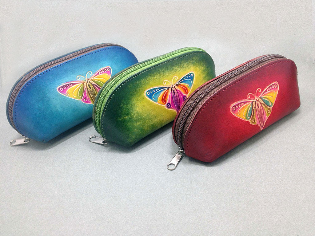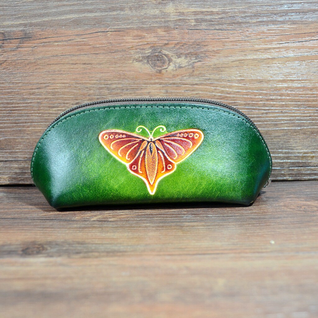 Women's handmade genuine leather glasses case vintage cowhide coin purse ethnic style casual bag zipper key bag