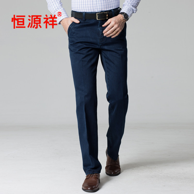 Hengyuan Xiang middle-aged jeans men's spring thick middle-aged dad high-waisted loose straight pants men's spring and autumn models