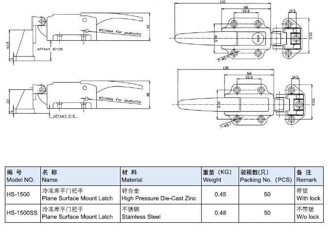 Frozen library flat door handle HS - 1500 Zinc alloy cold - storage door handle with lock