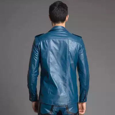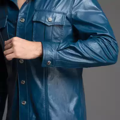 WF47 Men's calfskin shirt Long-sleeved slim leather shirt Sportsman loves