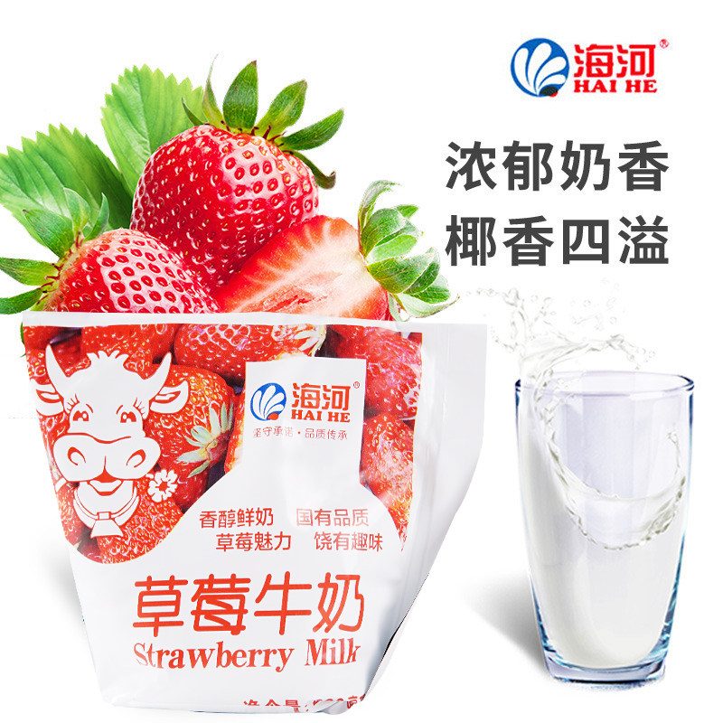 Tianjin Sea River Milk Dairy Strawberry Milk Modulated Milk 220 * 18 Net Red Milk Shake bagged