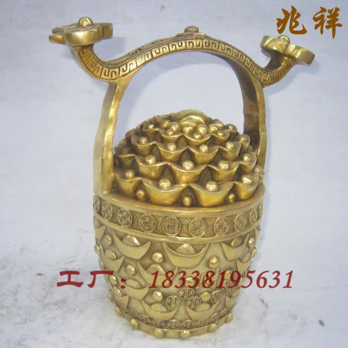 Large number Ruyi pure copper one barrel gold Treasure Fortune in treasure Treasure Gold Barrel Gold Barrel Residence Ornament Pendulum Decorated Bronze Sculpture