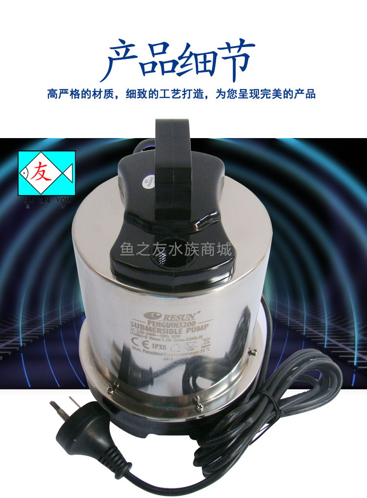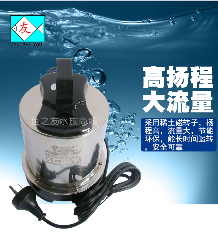 Stainless steel submersible pump with folding fish pool pump PU3200 ‥Filtrationcycle pump