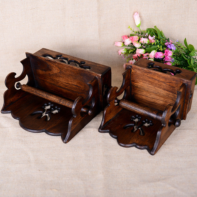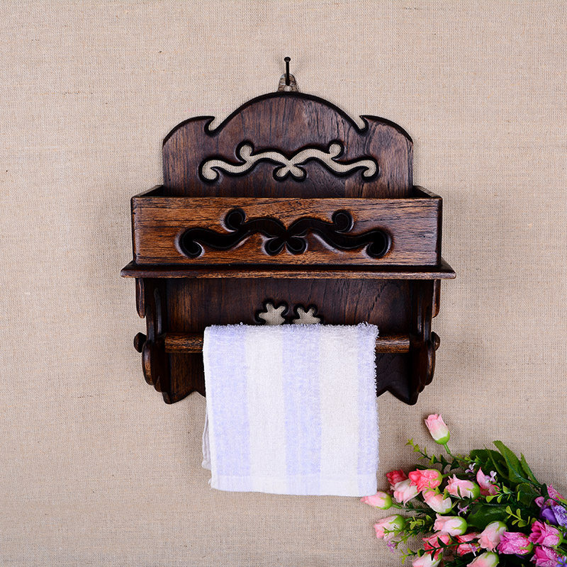 Thai Crafts Gift Hem Accessories Wood Carving Eurostyle Hotel Spa Clubhouse Bathroom Solid Wood Extractable Toilet Paper Box Towels Hanging Towel Hanging