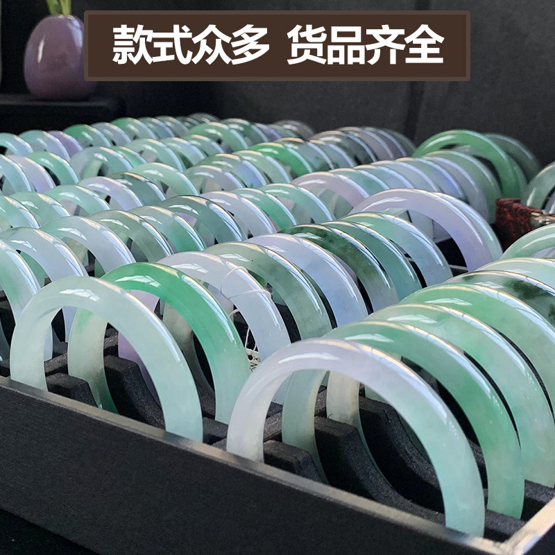 Natural Myanmar jade jade bracelet old pit ice waxy oil green floating flower jade bracelet jewelry jade woman