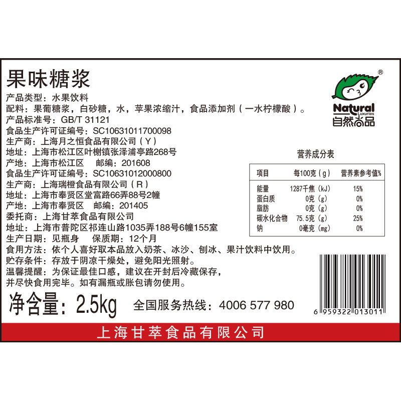 Natural Shangpin Fructose Concentrated Syrup 2500g Fructose Syrup Raw Material for Coffee Milk Tea Drinks