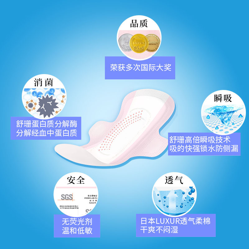Taiwan Shushan aunt towel Susan basic version of sanitary napkin 3 days, 2 nights, 1 care, no fluorescent agent, antibacterial touch, 6 packs