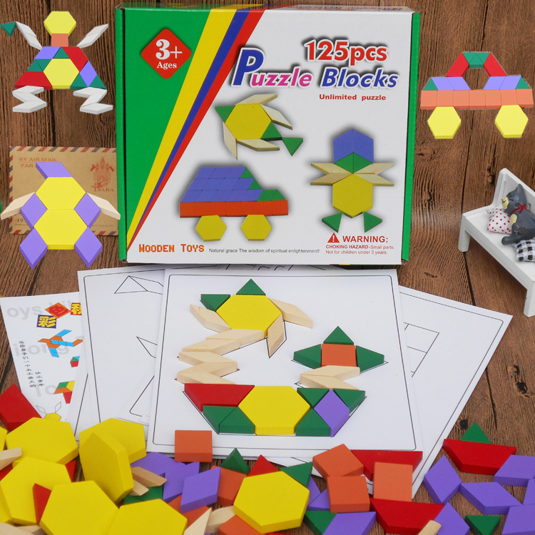 Early teaching aids Wooden Nursery School Early Teach Children Students' Beneficial Intelligence Toys 125 Pieces Shape Jigsaw Puzzle 7 Qiaqiao