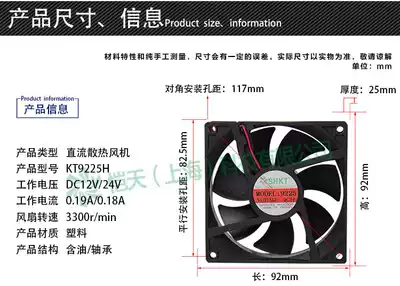 92 * 25mm 9225 9025 DC fan DC24V small axial fan 12V Inverter cooling fan