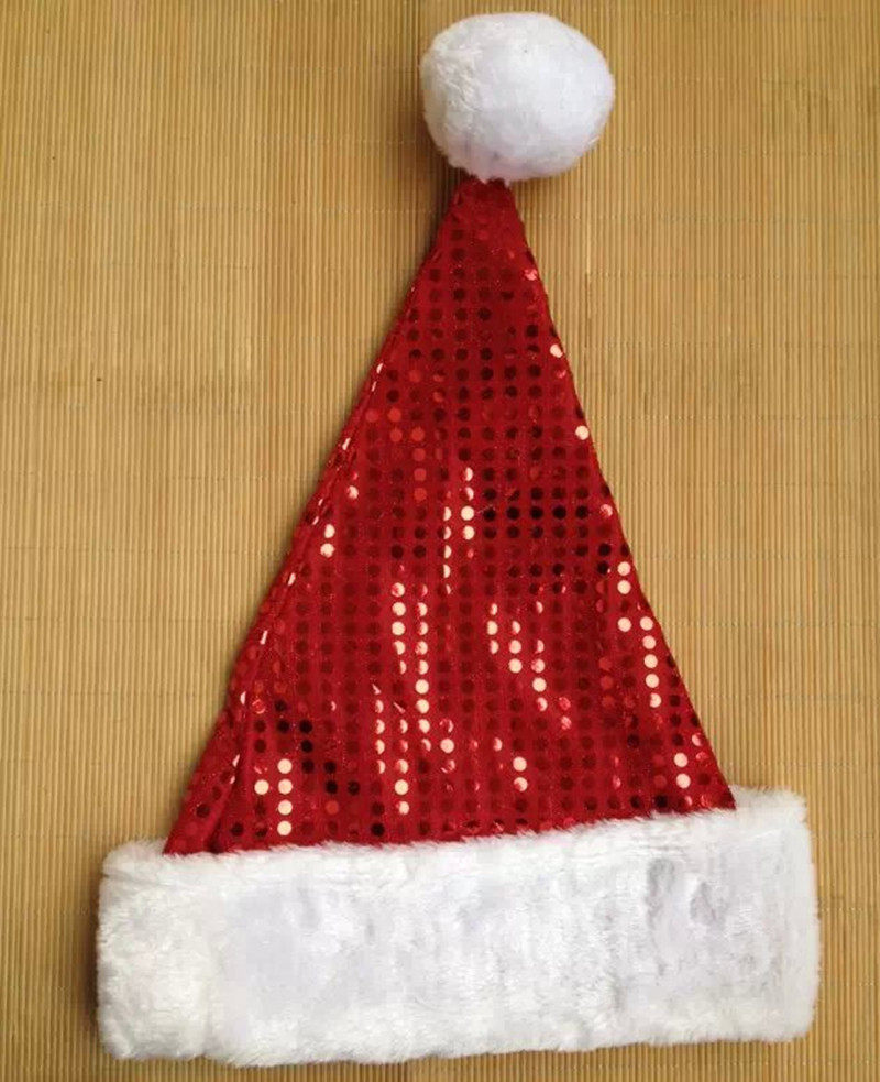 Christmas Gift Ornament Plush Beaded Christmas Hat Santa Claus Cap Big Cap Ball Christmas Hat