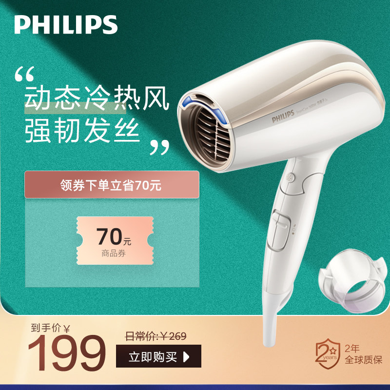 Philips smart double guard hair dryer high power negative ion hair care folding portable hair dryer BHC201
