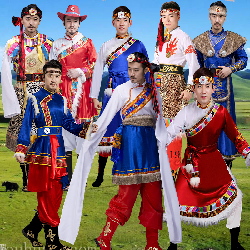Tibetan costume men's dance performance to serve adult water sleeve dance performance dress Mongolian-style gown ethnic costumes