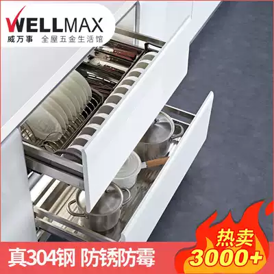 Live Wei master 304 stainless steel double buffer kitchen overall cabinet pull basket drawer type dish rack dish basket H1K