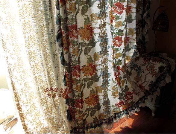 Iris Smile~~ Printed Linen Fabric French Country Curtain Handmade Customization