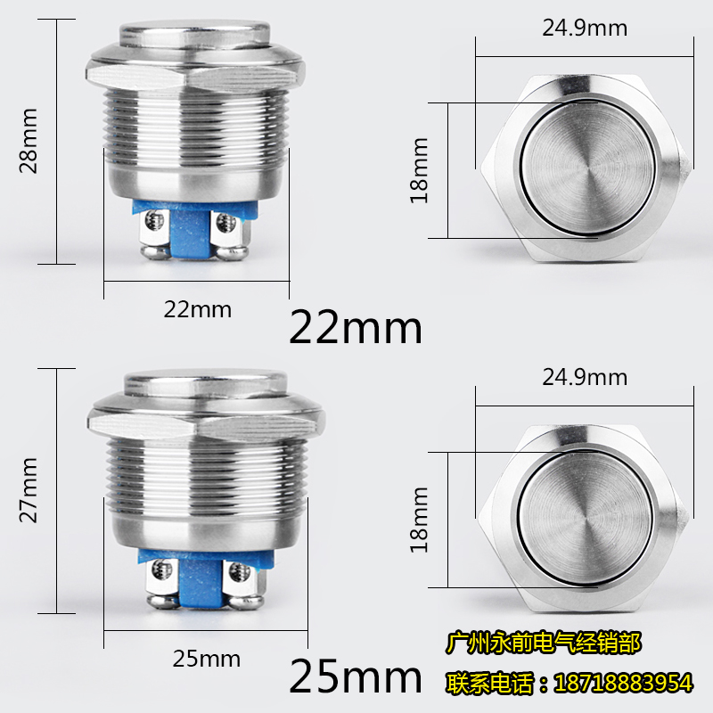 22 25mm metal button switch Reset button screw foot welded foot waterproof button car switch