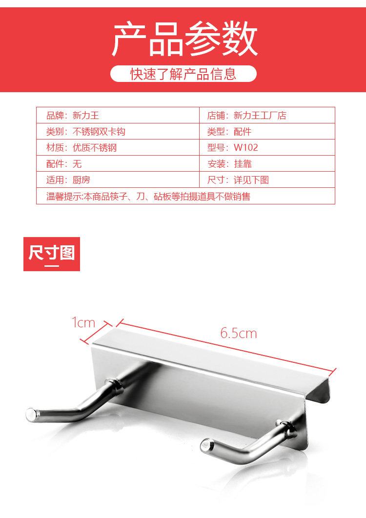 (combined purchase contact customer service to change freight) Applicable 1CM square tube stainless steel double hook hook accessories