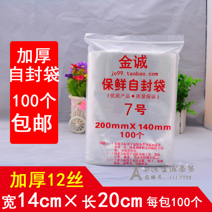 Thickened 7 Number of self-proclaimed bag Food grade plastic packaging bag 14 * 20 * 12 silk plastic bag moisture-proof transparent bag clip chain