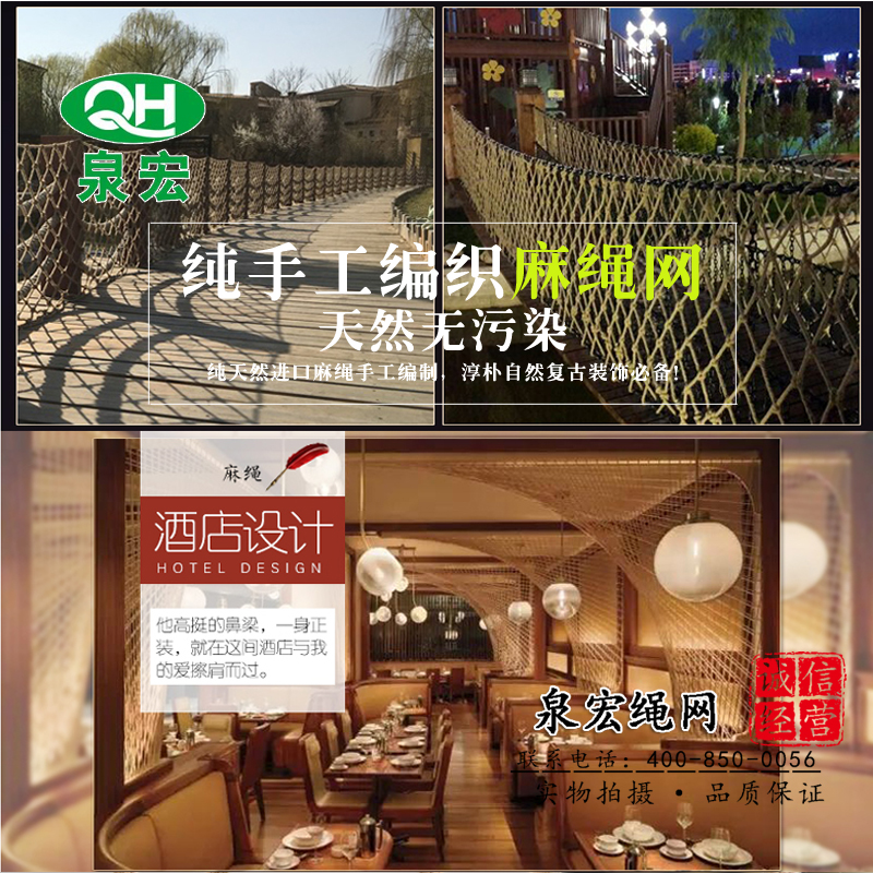 Quan Hong hemp rope net suspended ceiling decorative net Stair protection climbing net Safety anti-fall heterosexual net Clothing store hanging net