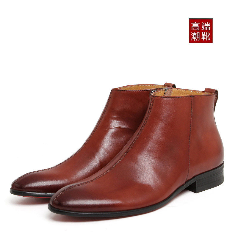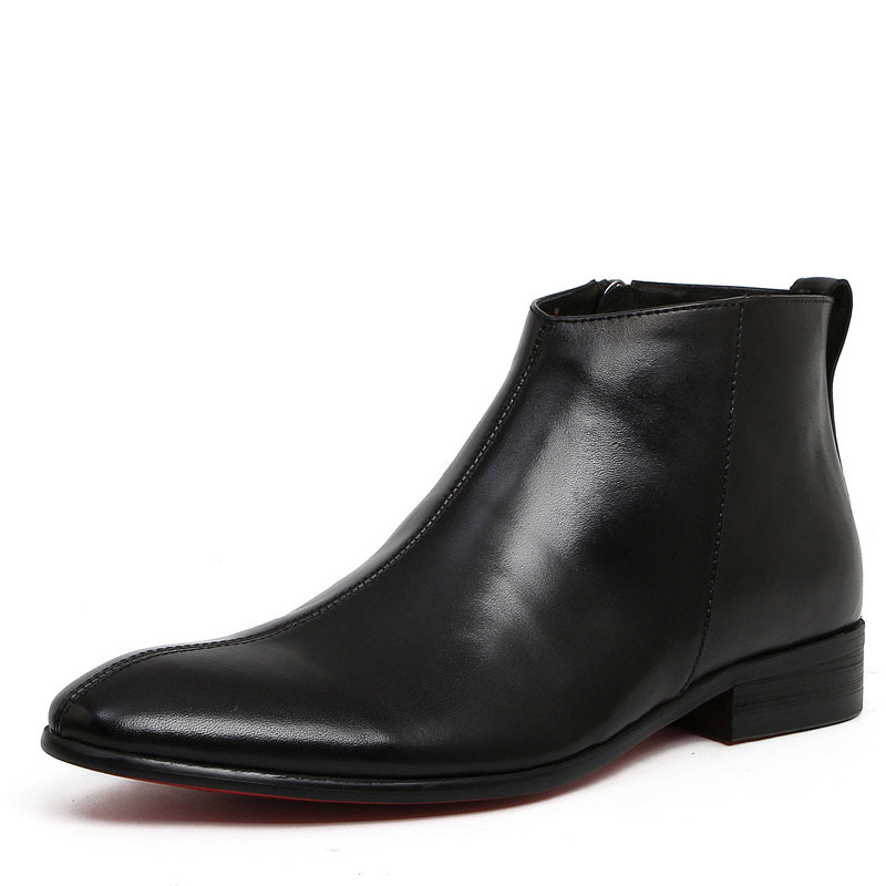 Winter men's leather boots casual high-top shoes pointed toe British Korean style Martin boots short tube leather zipper trendy short boots - Taobao