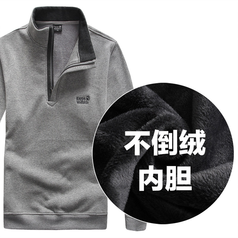 Glint thickened men's thick T-shirt male grip suede collar autumn winter cover jacket man's middle aged mid-aged not down down