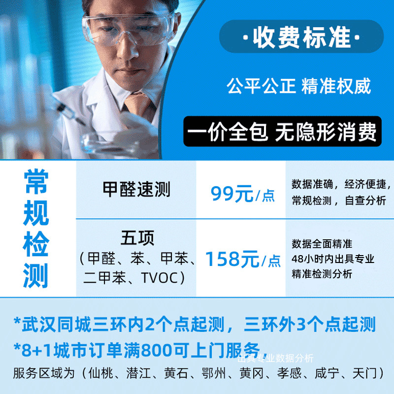 Formaldehyde Single Detection (8 years of testing governance experience) Regular 5-item detection (formaldehyde phenyltoluene xylene TVOC)