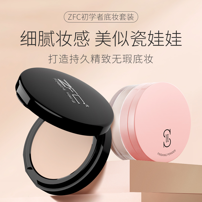 zfc beginner makeup set full set of foundation cream makeup powder honey powder wet powder loose powder foundation light makeup cosmetics