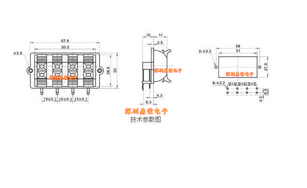 8-bit straight foot wiring audio speaker clip two holes distance 57CM 8 feet spot hot sale