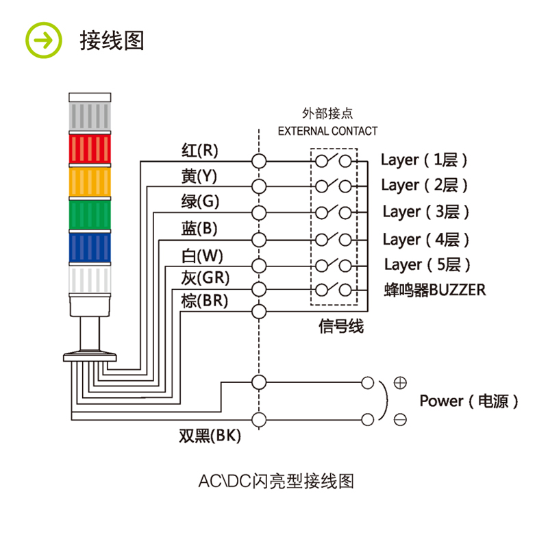 One layer red always bright Two layers red-green Always bright Three layers Red-yellow-green Always bright One layer red shiny Two layers Red-green shiny three layers Red-yellow-green Shiny One layer Red always bright with sound Two layers Red-green always bright