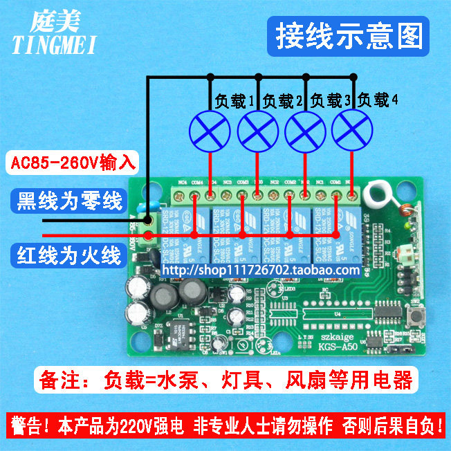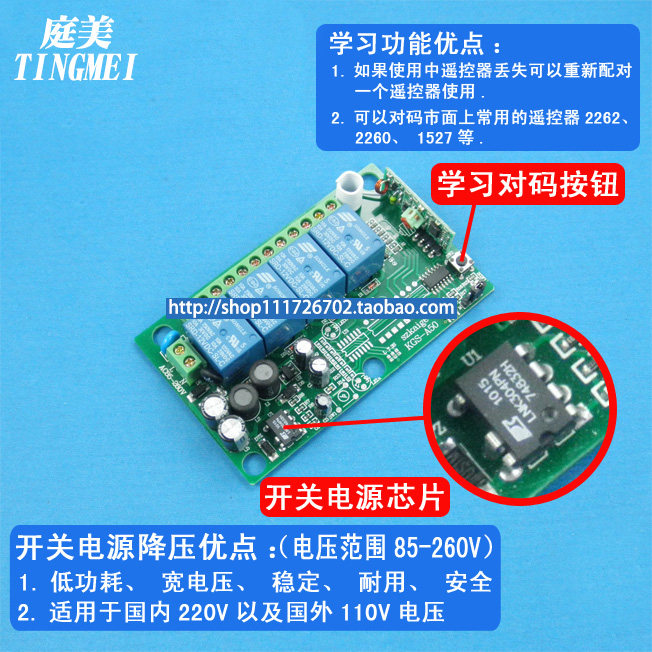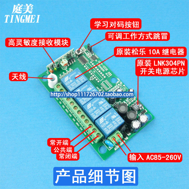Remote industrial use high-power wireless remote control switch receiver module 220V four-way with remote control