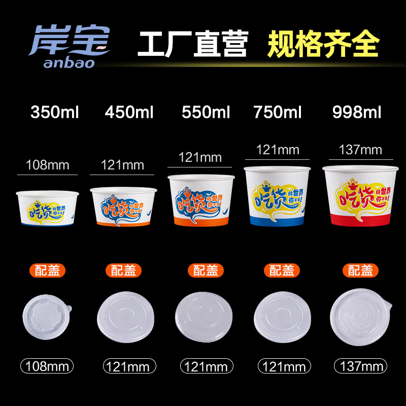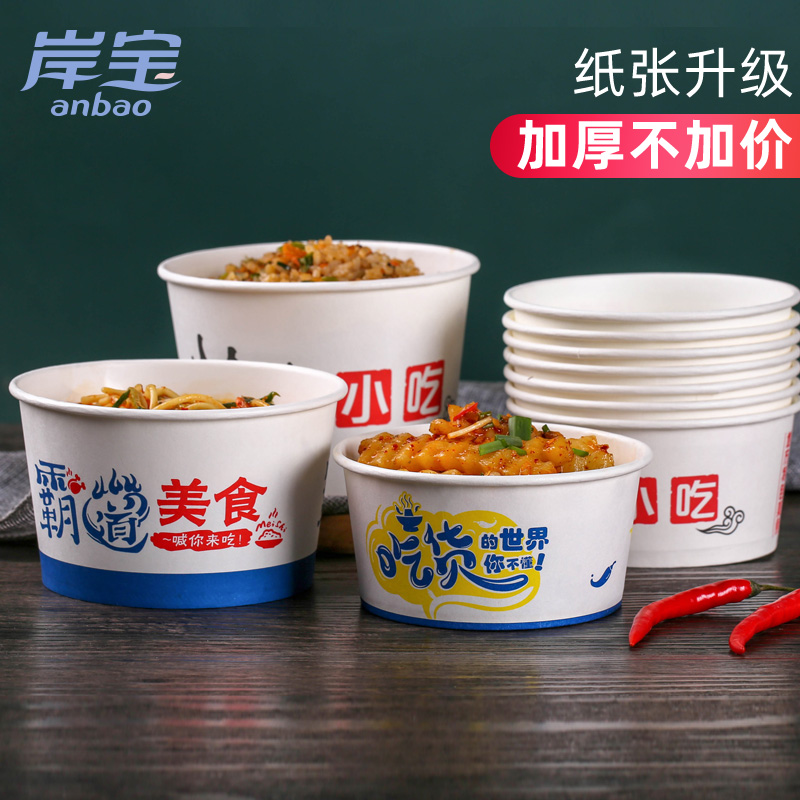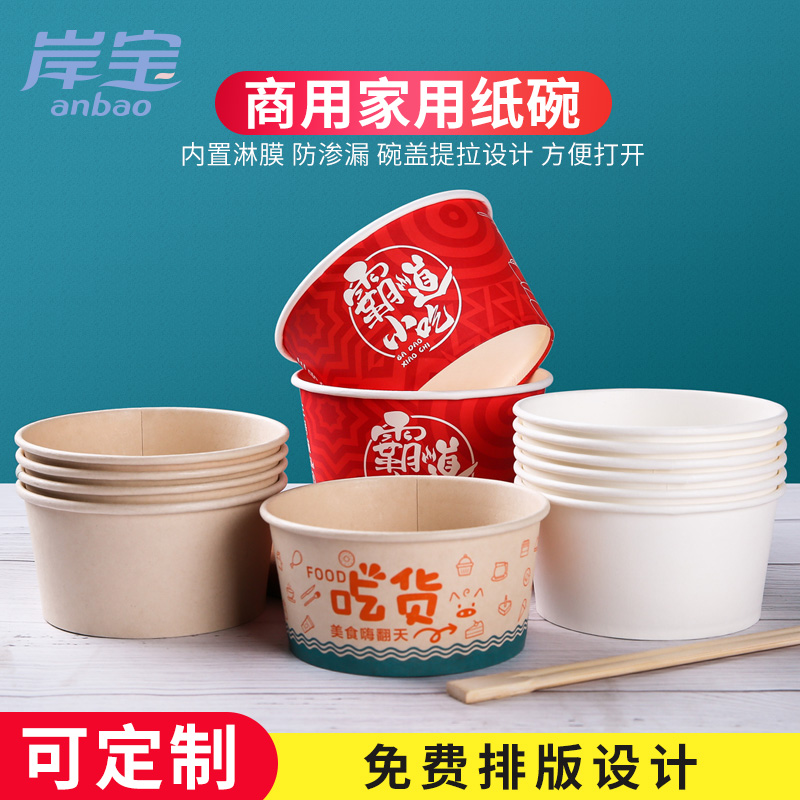 Shore treasure disposable bowl paper bowl Household round packing instant noodles convenient bowl chopsticks paper lunch box Takeaway commercial whole box