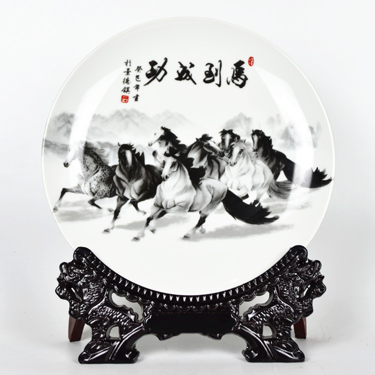 Ceramic porcelain 12 zodiac horse to success decoration hanging plate home decoration craft gifts decoration study office ornaments