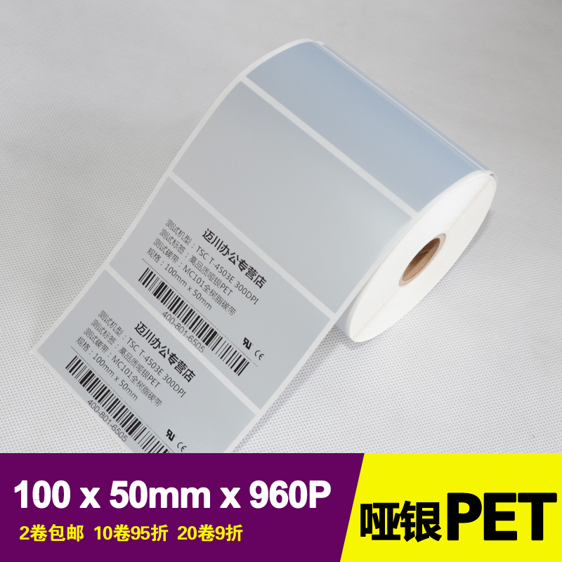 BP116 Asian silver label paper dumb silver self-adhesive barcode printing paper 100mm x 50mm x 960 sheet single row waterproof scratch-resistant friction oil pollution high temperature fixed assets nameplate mark