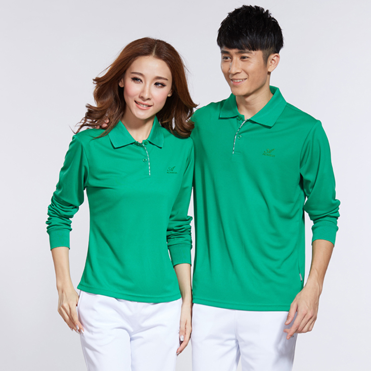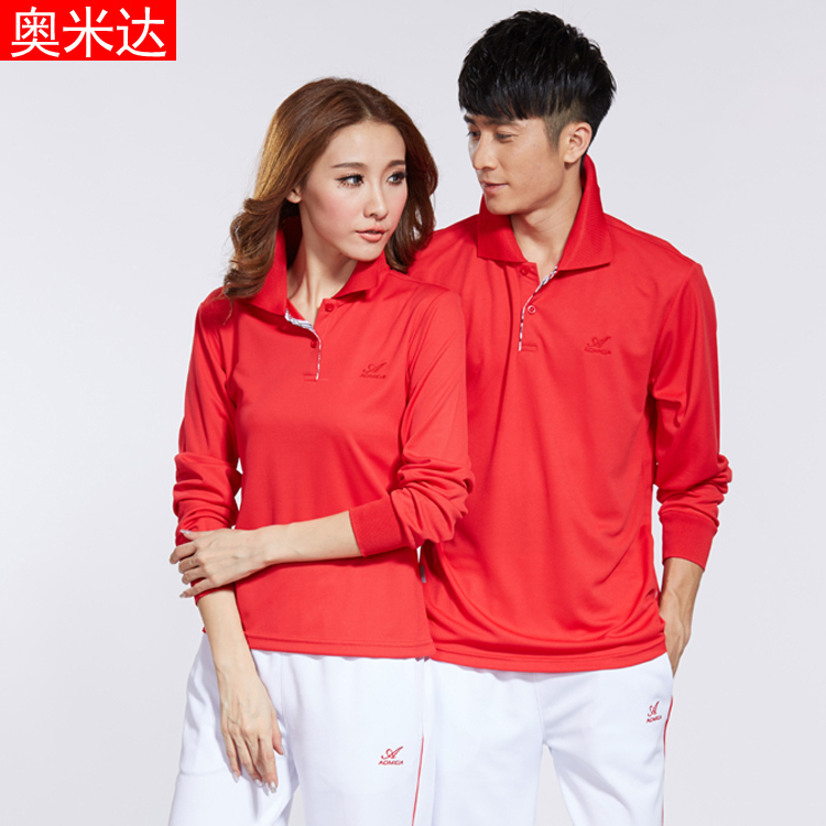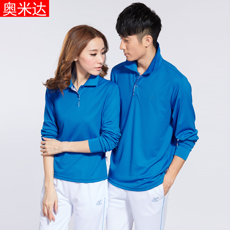 Omida's new men's and women's long-sleeved T-shirt sportswear spring and autumn couple models lapel Jiamusi aerobics clothing