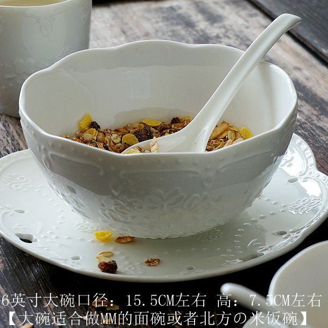 (Porcelain Art Residence) Eu Style Relief Lace Butterfly Ceramic Bowl Breakfast Bowl rice bowl Bowl Soup Bowl with Blister Noodle Bowl salad bowl