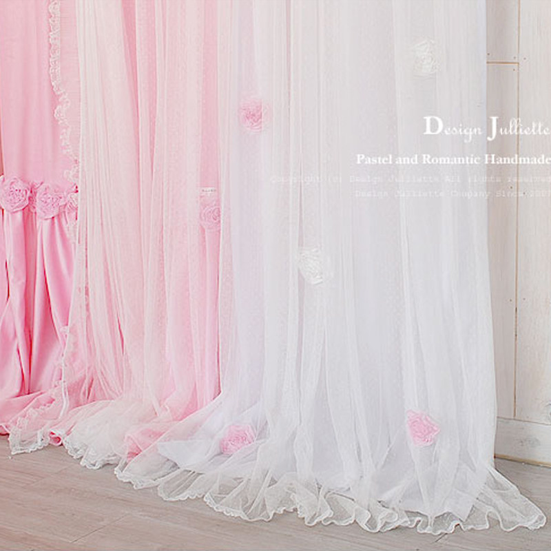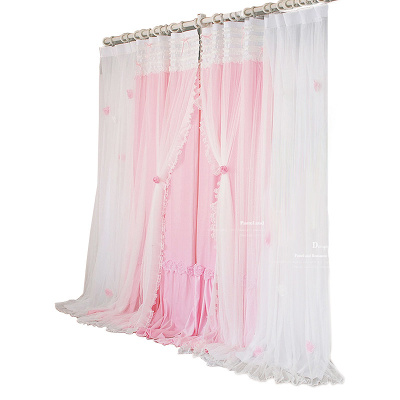 Children's Room Girl Lace Pink Princess Heart Curtains Net red curtains in wind shaking curtains