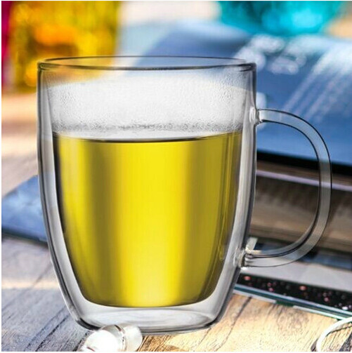 Creative glass cup with handle coffee cup tea cup heat insulation with handle double flower tea cup beer mug transparent 400ml