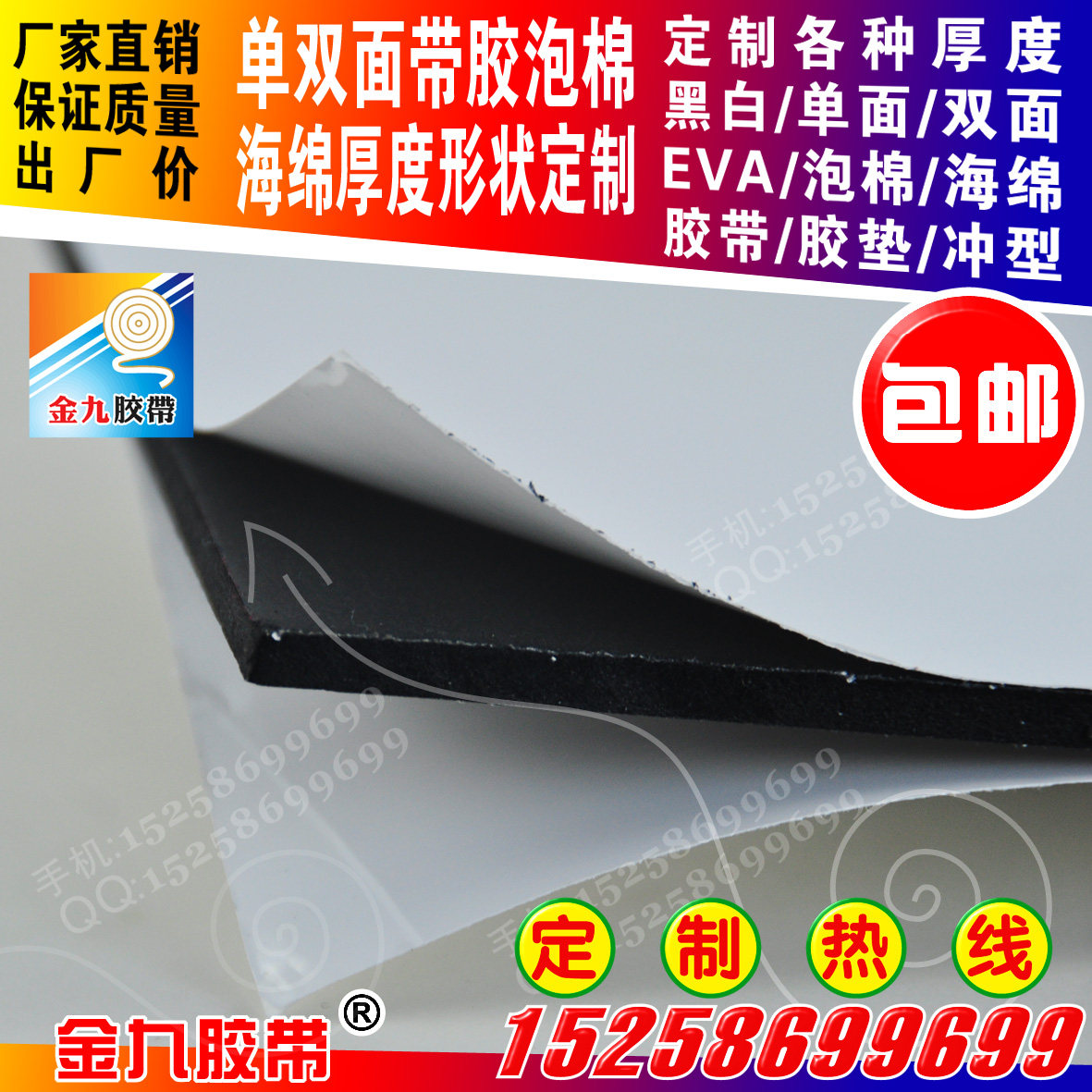 Single-sided black and white EVA foam sponge shock-proof adhesive pad 1-10mm thick kraft release paper according to customer specifications