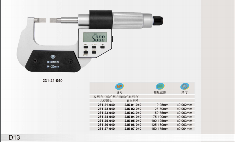 Green Blade Micrometer 0-25mm High precision micrometer precision more than 0001 Explicit mechanical vane micrometer