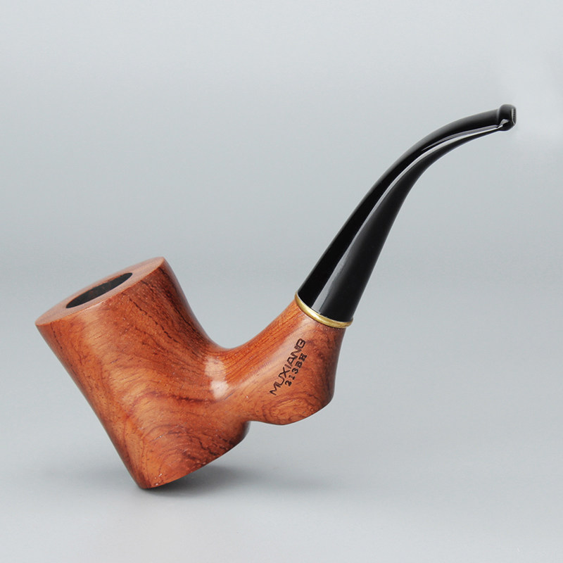 Muxiang Handmade mahogany rosewood hump flat-bottomed pipe personality creative solid wood curved handle filter pipe smoking set