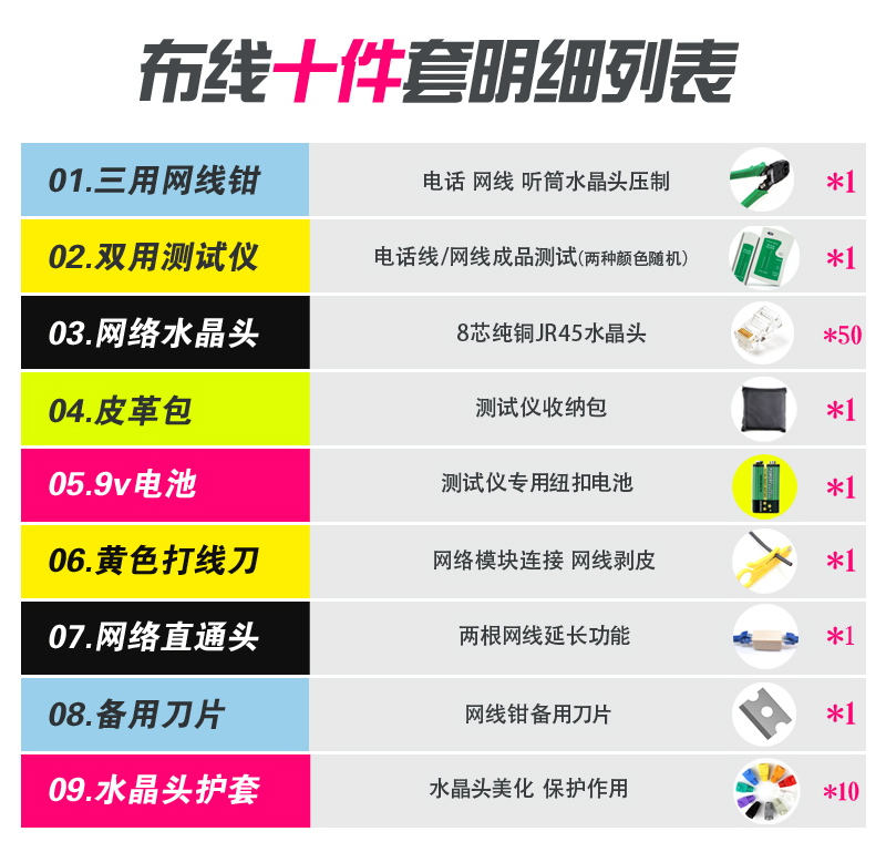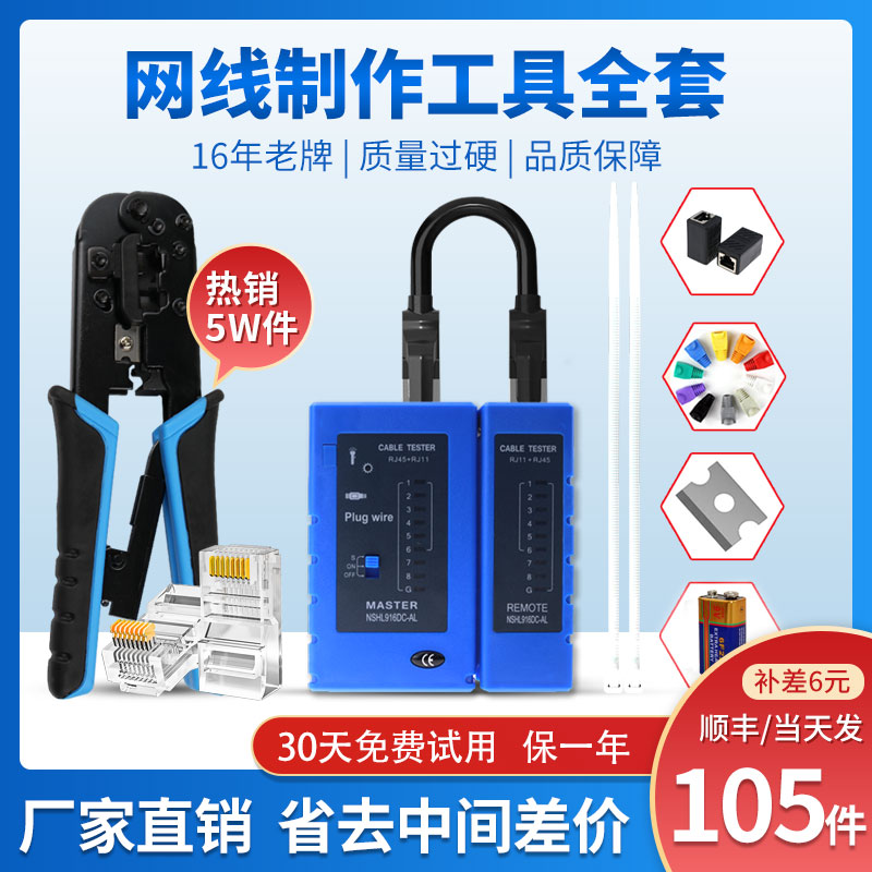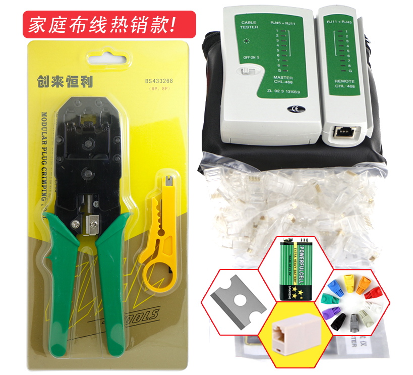 Household network cable making tool set super 556 six types of multi-functional network crimping pliers subnetwork connector stripping pliers tool 8 core crystal head mesh pliers Professional grade engineering wiring set