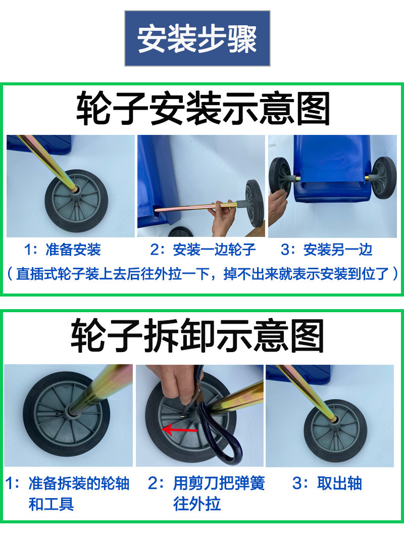 Large Number Outdoor 100L120L240L Trash Can Wheels Universal Accessories Thickened Large Axle Iron Core Wheels Solid Wheels