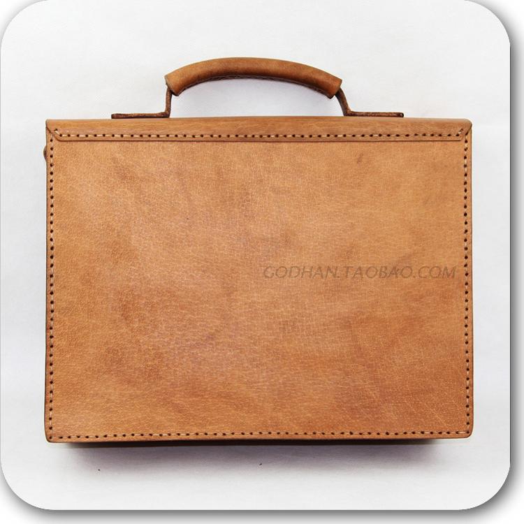 When Park Square's new single shoulder diagonal handbag first layer leather square shaped bag retro vegetable tanned leather for men and women