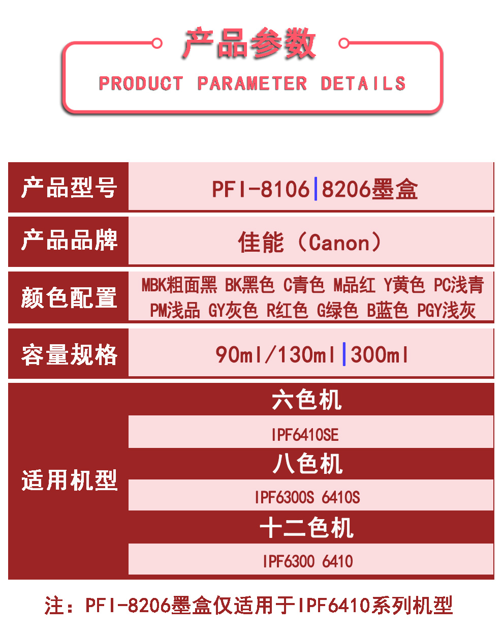 PFI-8106 Black MBKPFI-8106 Black BKPFI-8106 CPFI-8106 Pin Red MPFI-8106 YP