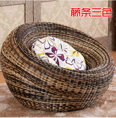 Rattan furniture rattan chair with back chair swivel chair Home tea table Three sets of round cushions Cute Couch Balcony Single