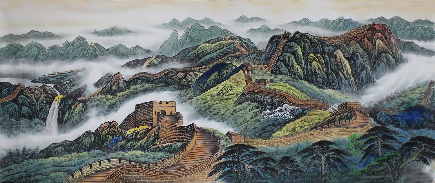 Pure hand-painted small eight foot landscape painting of the Great Wall Xiongfeng Office Living Room painting