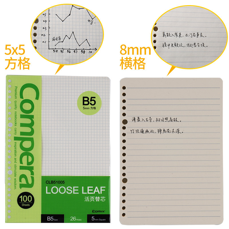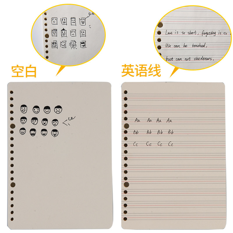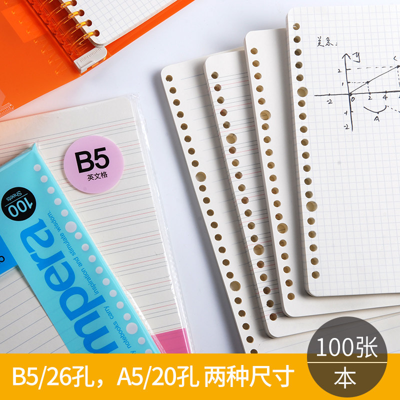 Qi Xin loose-leaf paper loose-leaf core B5 for the core horizontal bar English blank check notebook Loose-leaf core A5 hand book