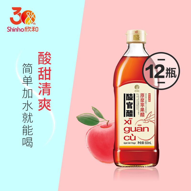 (618 pre-sale) Vinegar Raw Pulp Apple Vinegar 500ml * 12 Xin and pure apple juice Fermented 0 Fat Raw Vinegar