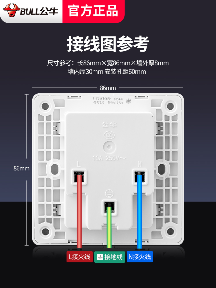 Bull seven-hole socket 86 type 7-hole wall concealed panel porous two two three plug power household