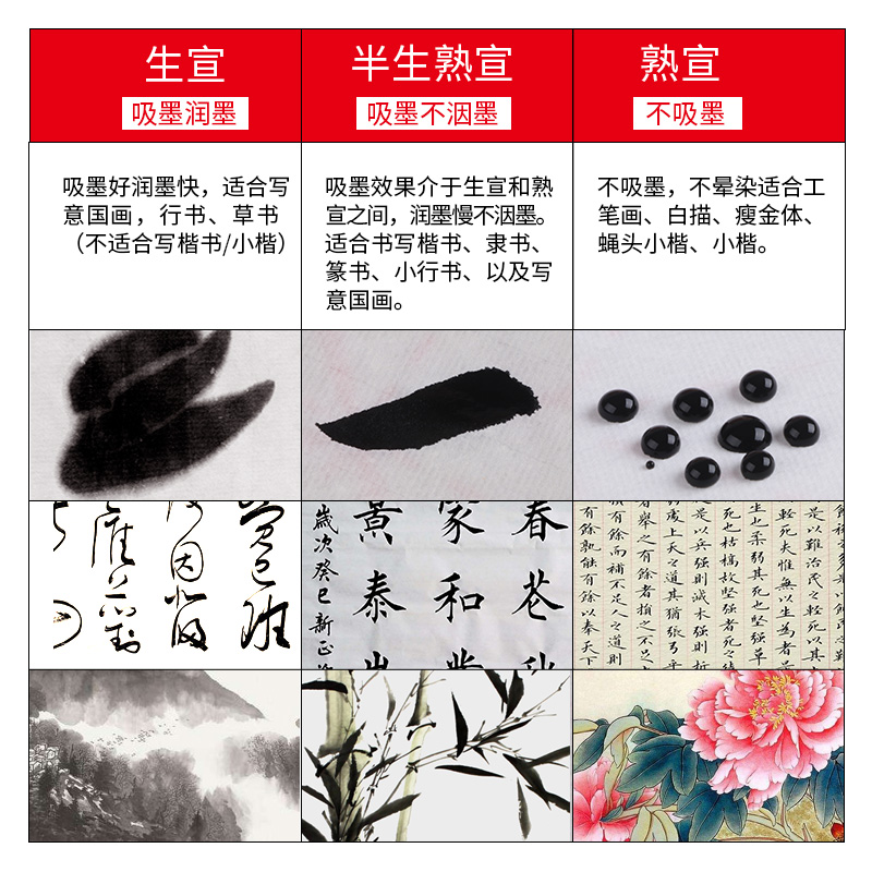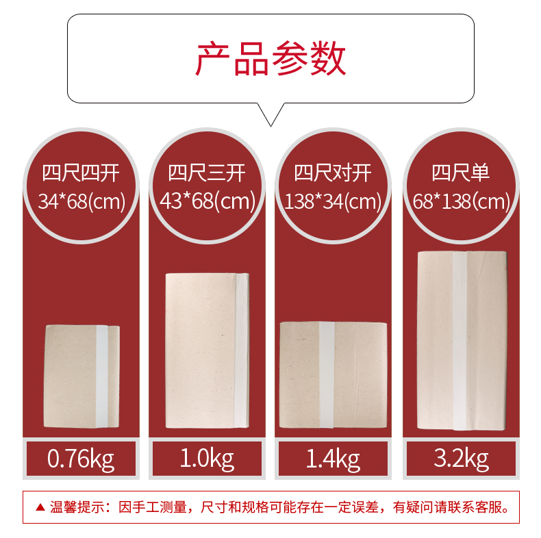 Calligraphy painting special paper Four feet pair of raw rice paper Cooked Chinese painting Brush word practice works Paper Small Kai Gongbi painting Six feet half-raw and half-cooked Xuan Beginner introductory practice paper Writing thickened
